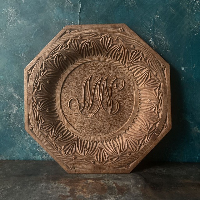 手彫りの木製飾り皿(スウェーデン / 1860年〜1880年頃) 19世紀後半のスウェーデンで制作された、深い歴史と物語を持つ八角形の木製プレートです。北欧の伝統的な手法である**チップカービング(切り込み彫り)**によって、放射状の美しい文様と中央のイニシャルが丁寧に彫り込まれています。 中央には、エレガントな筆記体で「MN」のイニシャルが刻まれています。このイニシャルにまつわる、貴重な背景が裏面に残された手書きのメモによって明らかになっています。 歴史が語るロマン この皿の裏には、「Mathilda Nordenfeldt(マティルダ・ノルデンフェルト)。1860〜80年頃に木に彫られたもの。彼女は1891年に亡くなった。ソーステンが生まれる2年後のこと... 祖母からマティルダへの贈り物。」という趣深いメモが残されていました。 これは、このプレートがマティルダ・ノルデンフェルトという女性のために彫られ、彼女の祖母から贈られた、家族の愛と記憶が込められた貴重な品であることを示しています。単なる装飾品ではなく、一族の歴史を静かに見守ってきたタイムカプセルのような存在です。 細部にわたる手彫りの温もりと、時を超えて受け継がれてきたロマンに満ちたこの飾り皿は、ノルディック・フォークアートの真髄を伝えています。 様式: スウェーデン伝統のチップカービング(切り込み彫り) 年代: 1860年〜1880年頃 素材: 木 サイズ: 幅: 約20.0 cm 高さ: 約1.7 cm 状態:罅あり、最後の写真見てください。 北欧の歴史、家族の物語、そして素朴な手仕事の美しさを愛する方に、自信を持ってお勧めする一点ものです。ご自宅の特別な空間に、歴史の重みを感じるアクセントとしてお迎えください。