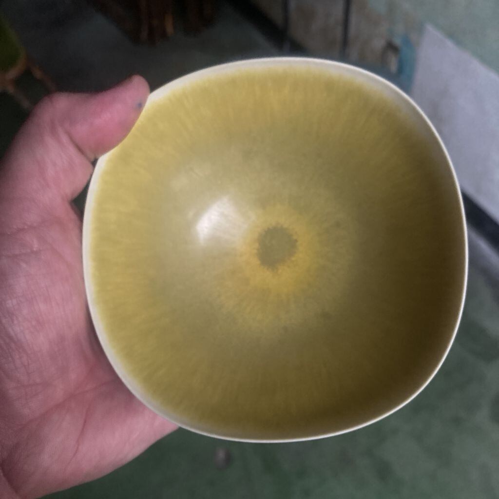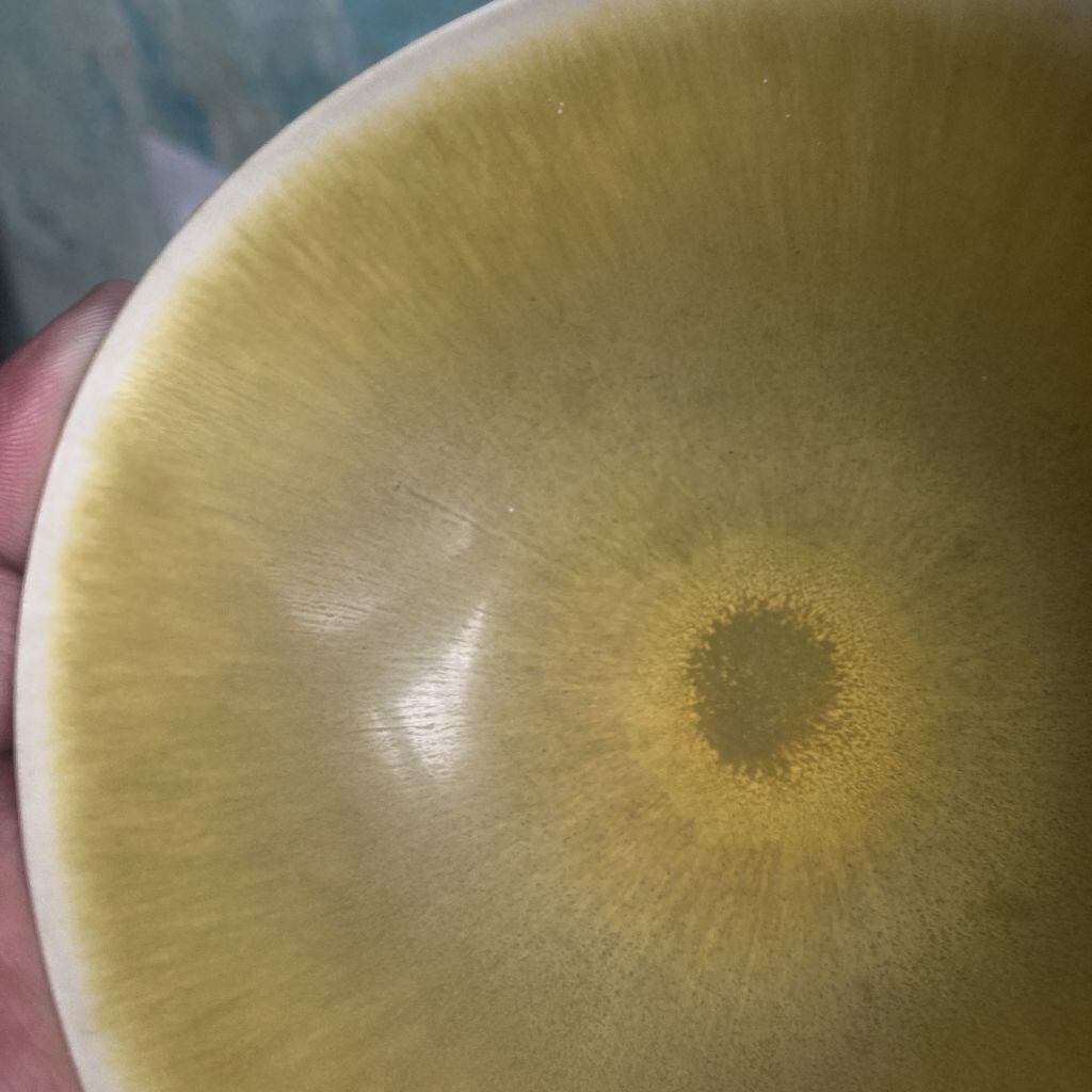 希少性の高い**「ハーシュフル・グレーズ(兎の毛の釉薬)」**の一種で、**マットな質感のゴールデンイエロー(黄金色)**が全体を覆っています。