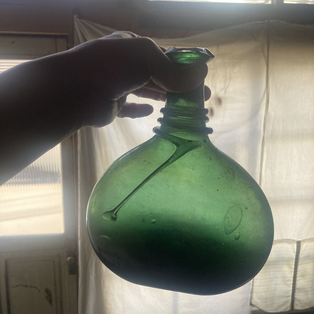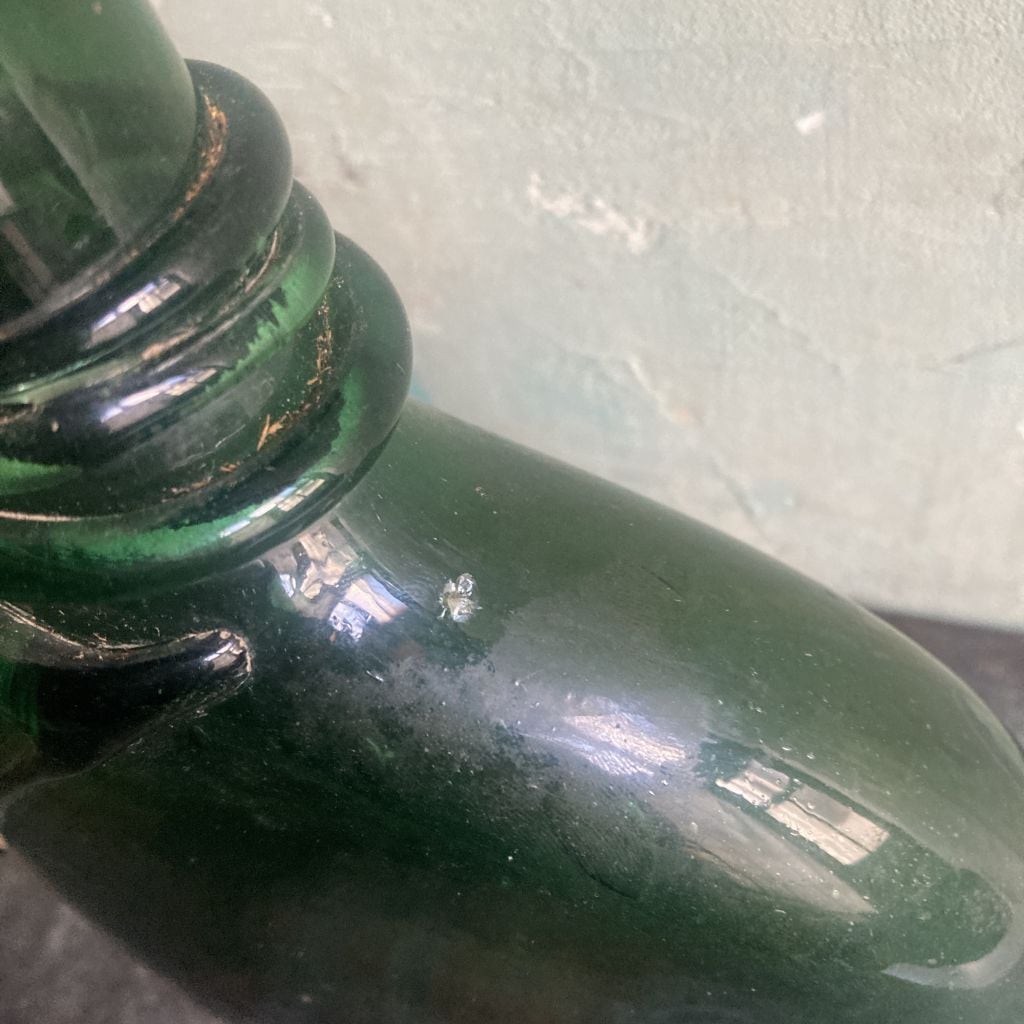 状態: 割れや大きなヒビはありませんが、アンティークガラス特有の擦れ、内部の曇り、製造時に混入した不純物や気泡が見られます。また、底面のポンチル跡が鋭利になっている場合がありますので、デリケートな家具の上に置く際は敷物などのご使用をおすすめします。