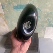 光にかざすと、古代ガラスを彷彿とさせる深みのあるグリーンが浮かび上がります。ガラスの内部に閉じ込められた無数の気泡や、ゆらめくような質感は、近代的な大量生産品には決して出せない土着的な美しさを持っています。