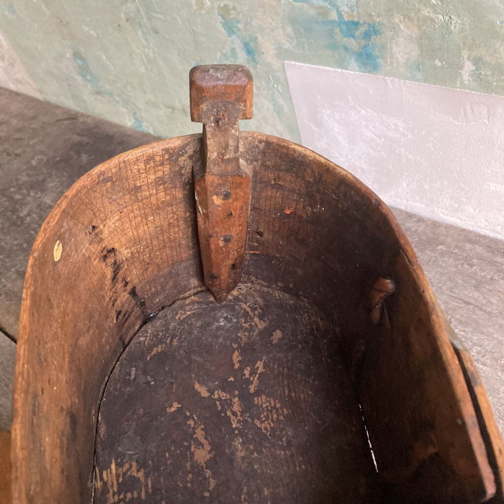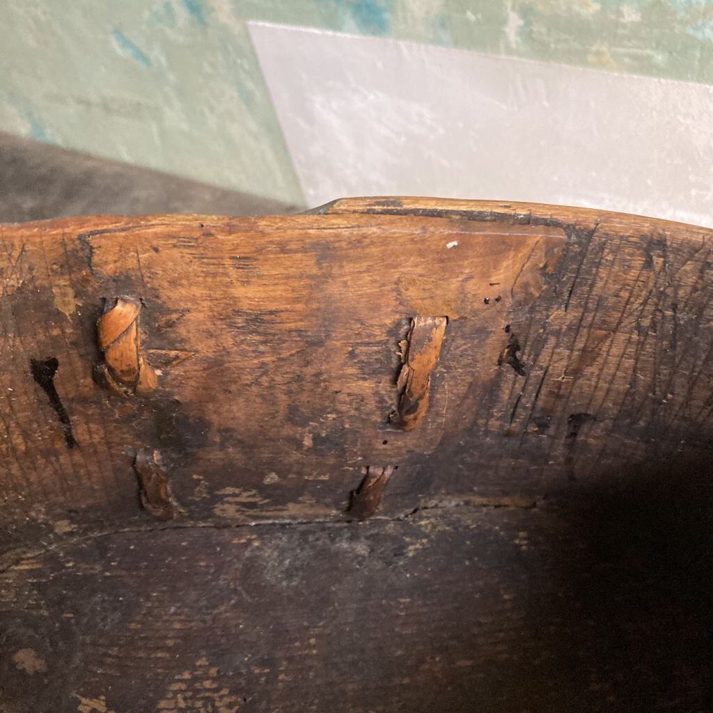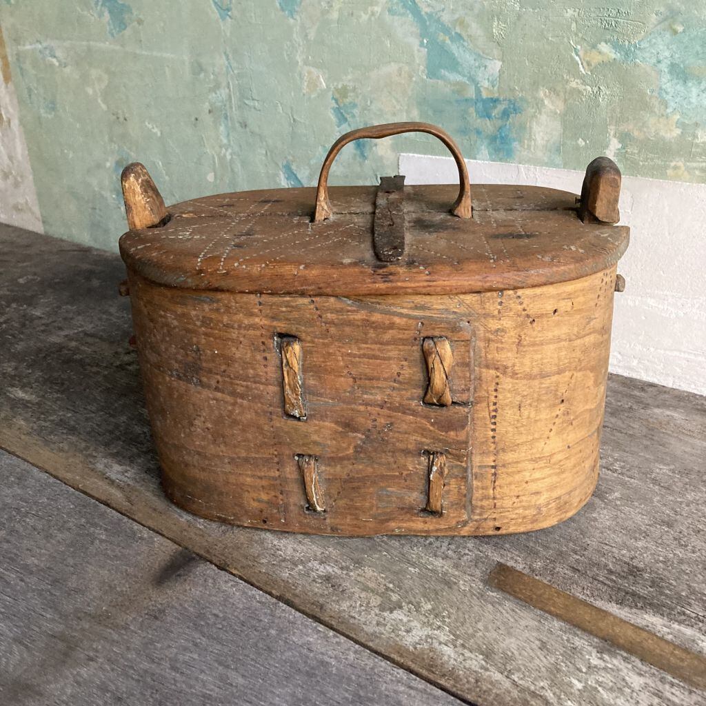 多分18世紀終わり19世紀初めのエスカ。ハンドルでは持てられない、持つとふたが開けてしまいます。ふたの直しも19世紀でされたと思います。直しも取れたりすることあります。それでも非常にいい感じのエスカ。素敵な箱として使われると思います。