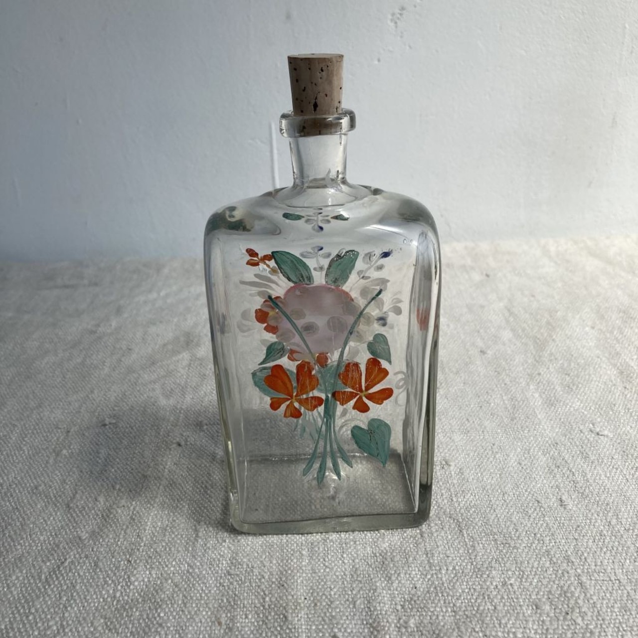 スウェーデンの19世紀終わりエナメル彩アンティークグラス瓶をご紹介します。手作業で作られた美しい彩色は、細部まで丁寧に描かれており、その繊細なデザインはまさに芸術品と言えます。