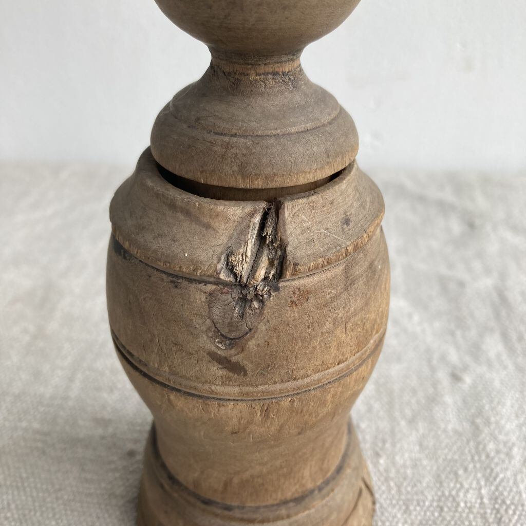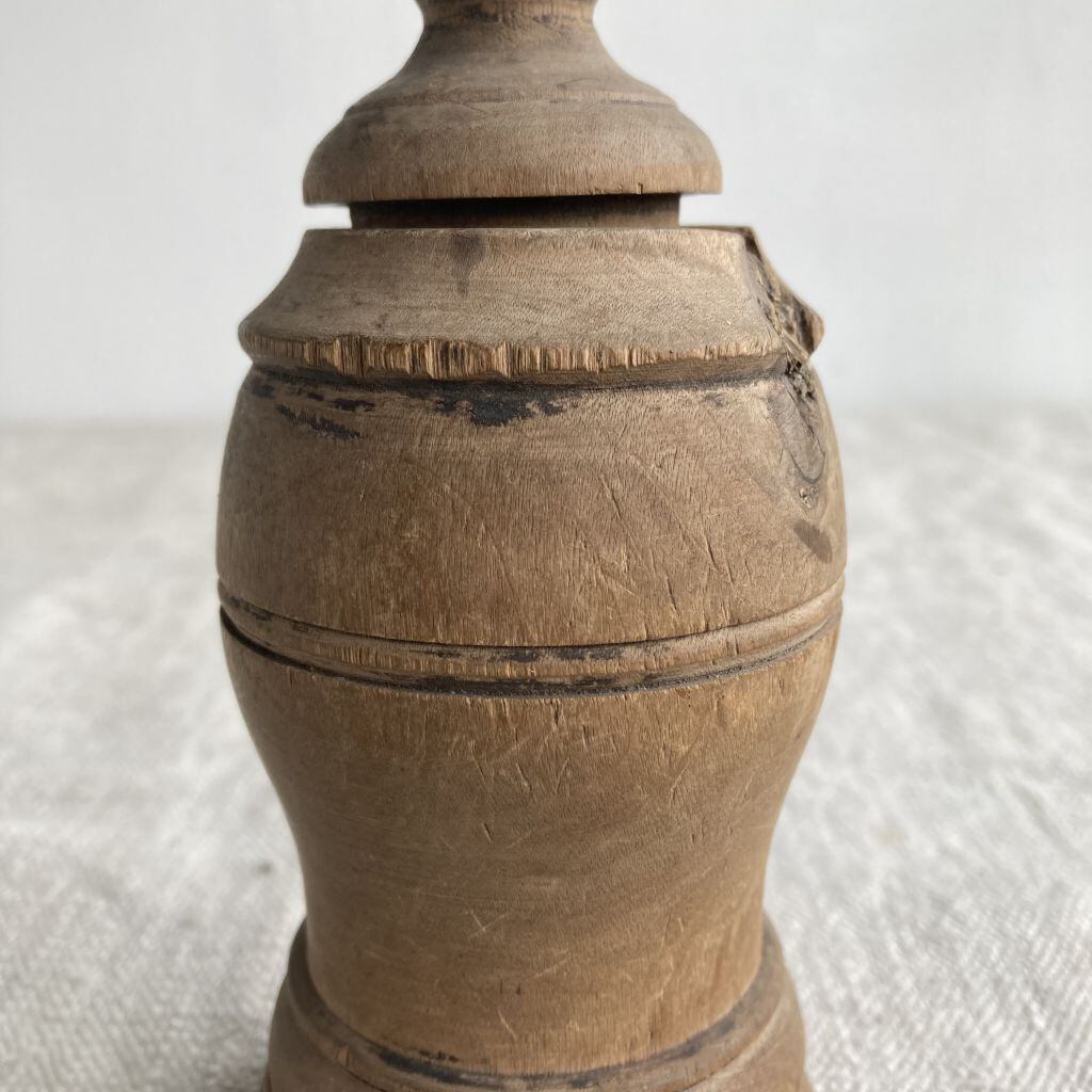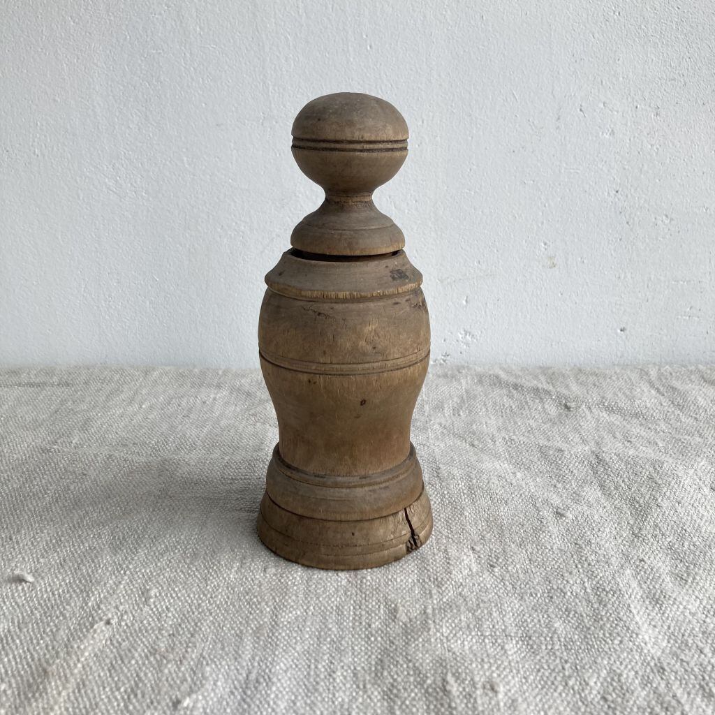アンティークスパイスグラインダーは、スウェーデンの19世紀製の木製スパイスグラインダーオブジェです。手で回すことで、スパイスを簡単に粉状にできるのが特徴です。風合いのある木材の質感が、落ち着いた雰囲気を醸し出しており、キッチンやダイニングテーブルなどのインテリアにも合わせやすくなっています。