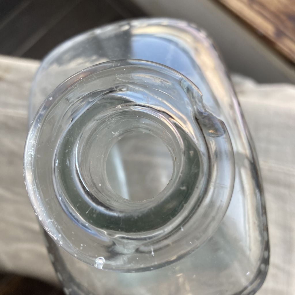 花の柄が刻まれた19世紀初めの蒸留酒瓶。スウェーデンの野外博物館Skansenにも同じようながらの蒸留酒瓶が展示されています。口に欠けがあるものの、その風格と歴史的価値は言うまでもありません。