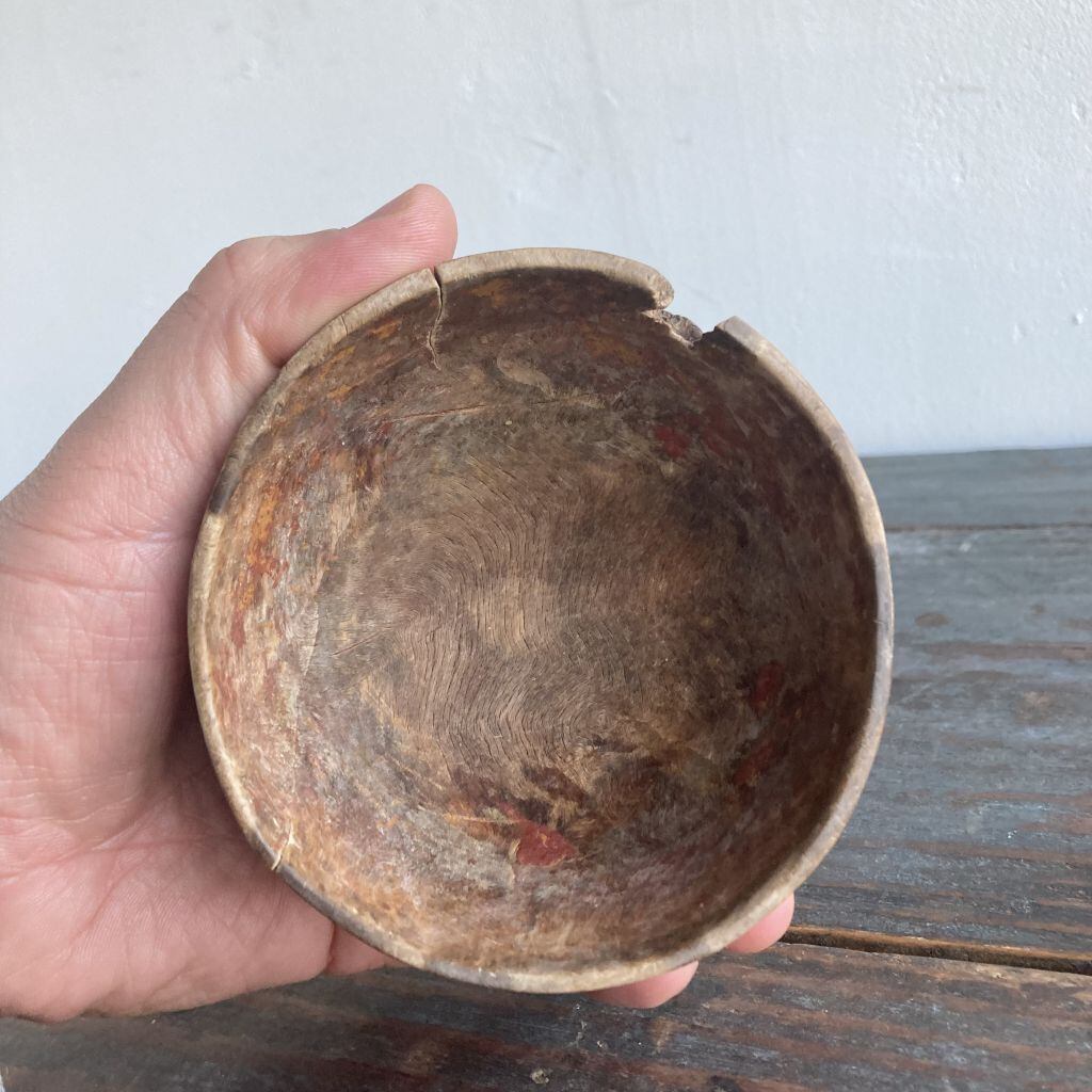 18世紀のくり抜いた木でできてる蒸留酒カップ