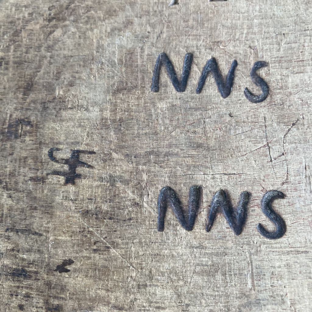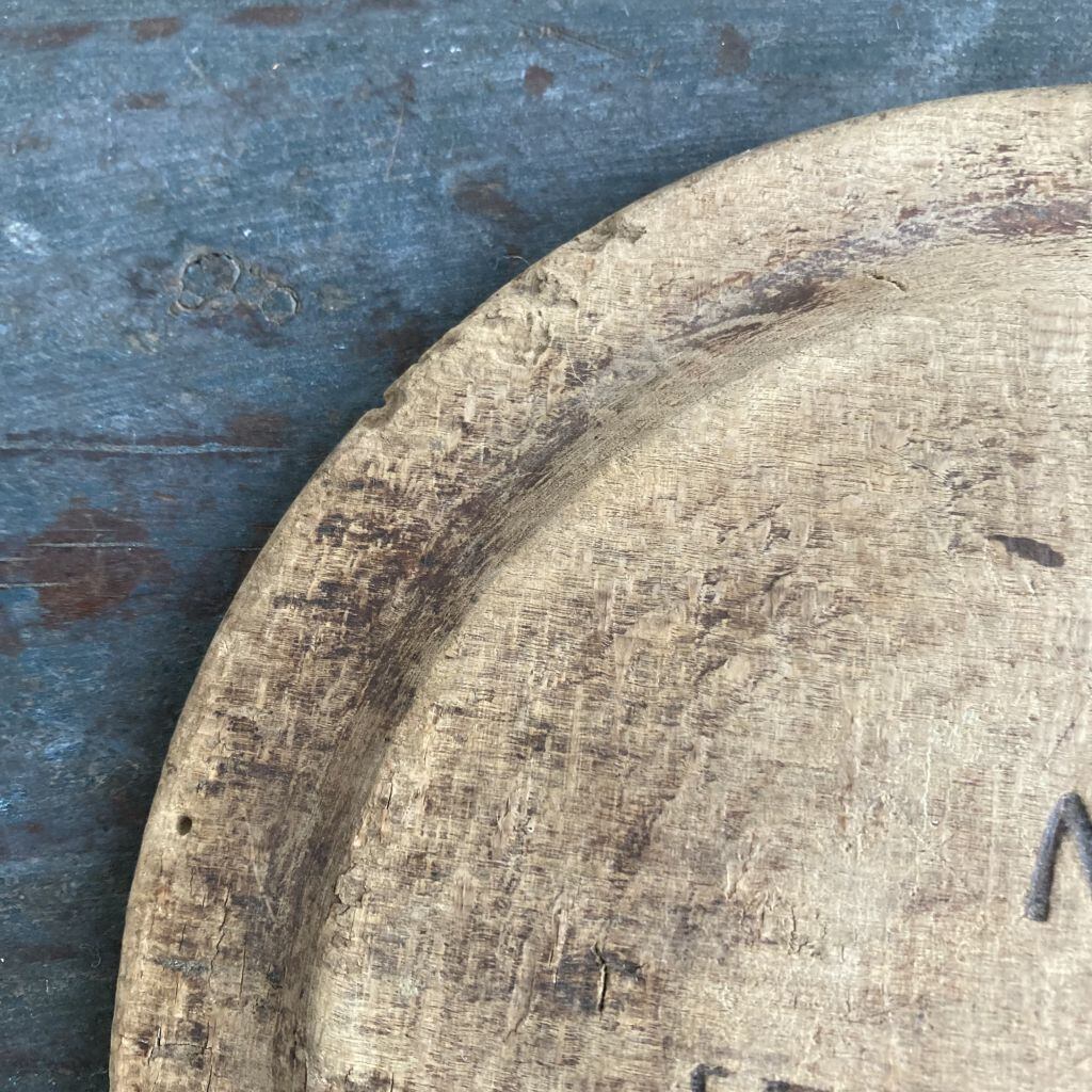 19世紀のスウェーデンで作られた貴重な木皿、直径20.5cmのお品です。庶民の暮らしに欠かせない道具として使われたこの木皿は、家の焼き印が入っていることが特徴です。木目の美しさや手触りをお楽しみください。